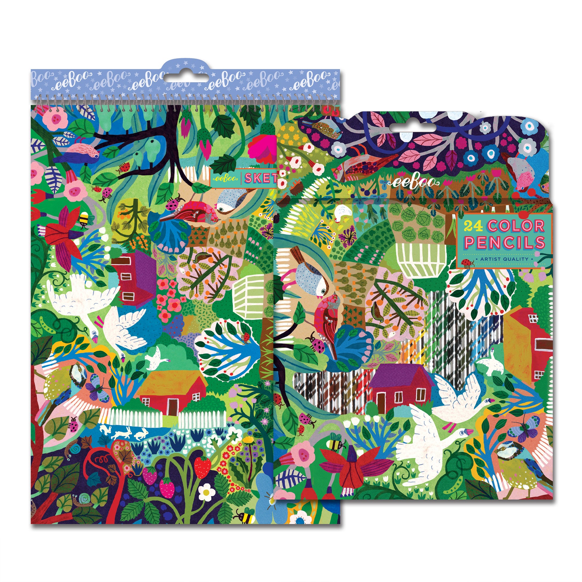 Bountiful Garden 24 Color Pencils Sketchbook Eeboo Gift For Adults 14
